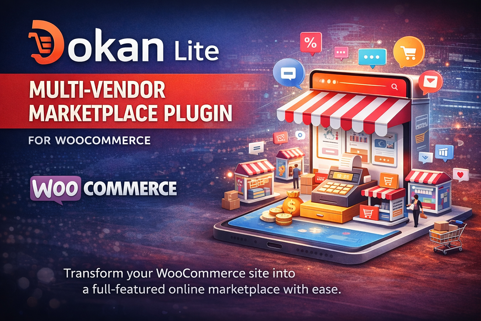 Dokan Lite is a powerful multi-vendor marketplace plugin that transforms your WooCommerce store into a fully functional online marketplace. Designed for flexibility and ease of use, Dokan Lite allows multiple vendors to register, manage their own products, track sales, and handle orders — all from a dedicated front-end dashboard.